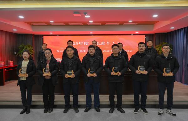 鼓舞士氣、凝心聚力。會上,黨委副書記、董事褚有春宣讀了公司2023年度先進集體和先進個人的表彰通報,勉勵他們珍惜榮譽、再接再厲、再創(chuàng)佳績,并希望全體員工向先進學習,向榜樣看齊,在各自的崗位上提振精神,在比學趕超,爭先創(chuàng)優(yōu)的過程當中努力做到“干一行、愛一行、鉆一行、專一行”。在熱烈的掌聲中,在喜慶的氛圍里,出席大會的公司領(lǐng)導為2023年度成績突出的集體、表現(xiàn)優(yōu)異的個人進行了頒獎。