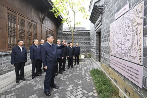 10月17日至18日,中共中央總書記、國家主席、中央軍委主席習(xí)近平在安徽考察。這是17日下午,習(xí)近平在安慶桐城市六尺巷考察。新華社記者 燕雁 攝
