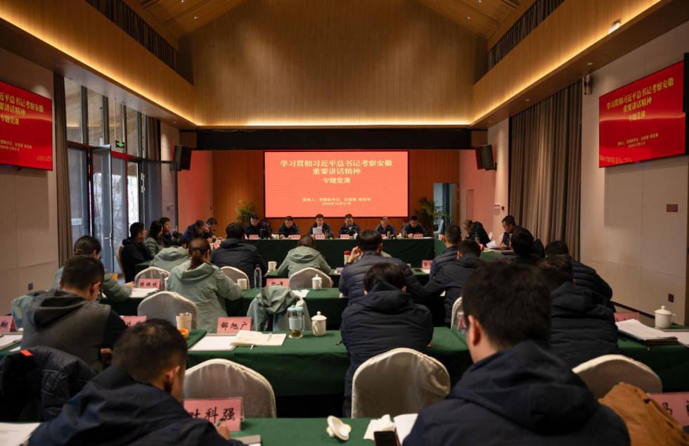 查看詳細(xì) +為深入學(xué)習(xí)貫徹習(xí)近平總書(shū)記考察安徽重要講話精神,切實(shí)汲取奮進(jìn)力量,勇?lián)姑⒄孀?shí)干,12月31日,市引江投資公司開(kāi)展學(xué)習(xí)貫徹習(xí)近平總書(shū)記考察安徽重要講話精神專題黨課。領(lǐng)導(dǎo)班子、外部董事及全體員工參加。公司黨委副書(shū)記、總經(jīng)理胡召根圍繞充分認(rèn)識(shí)習(xí)近平總書(shū)記考察安徽重要講話的重大意義、深刻領(lǐng)會(huì)習(xí)近平總書(shū)記考察安徽重要講話精神的豐富內(nèi)涵、切實(shí)推動(dòng)習(xí)近平總書(shū)記考察安徽重要講話精神落地生根等方面,進(jìn)行了全面系統(tǒng)地闡釋和宣講。強(qiáng)調(diào)要切實(shí)把學(xué)習(xí)宣傳貫徹習(xí)近平總書(shū)記考察安徽的重要講話精神作為當(dāng)前和今后一個(gè)時(shí)期的重大政治任務(wù),堅(jiān)決把思想和行動(dòng)統(tǒng)一到習(xí)近平總書(shū)記重要講話的精